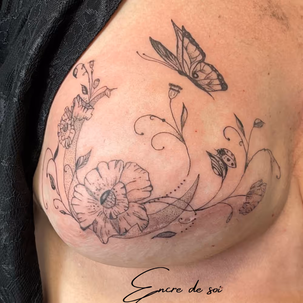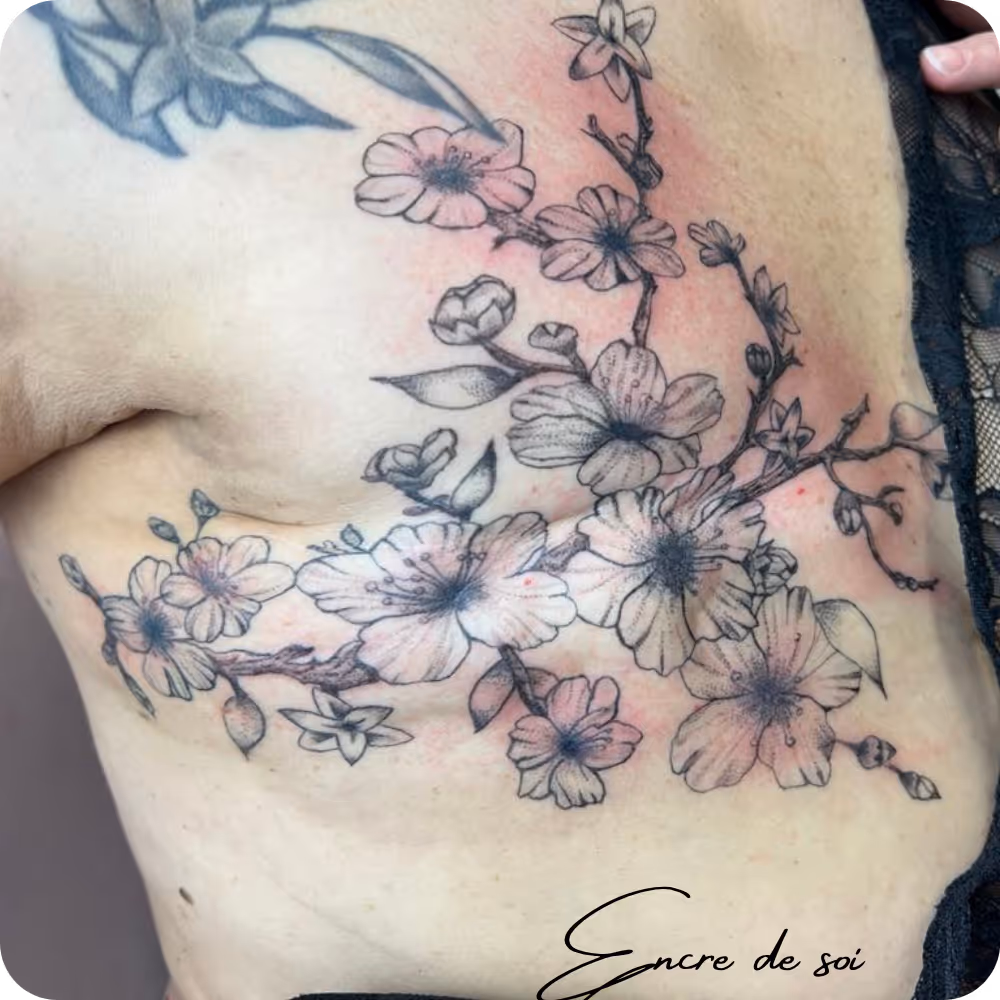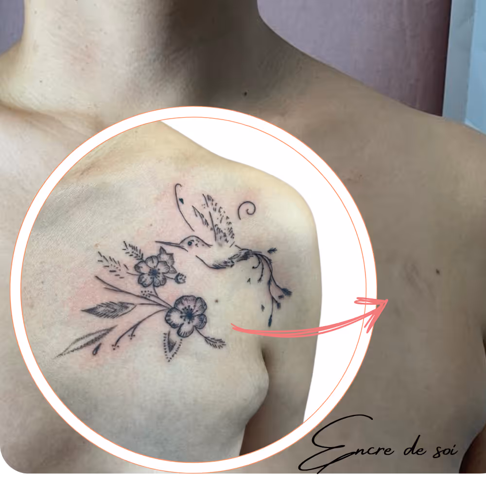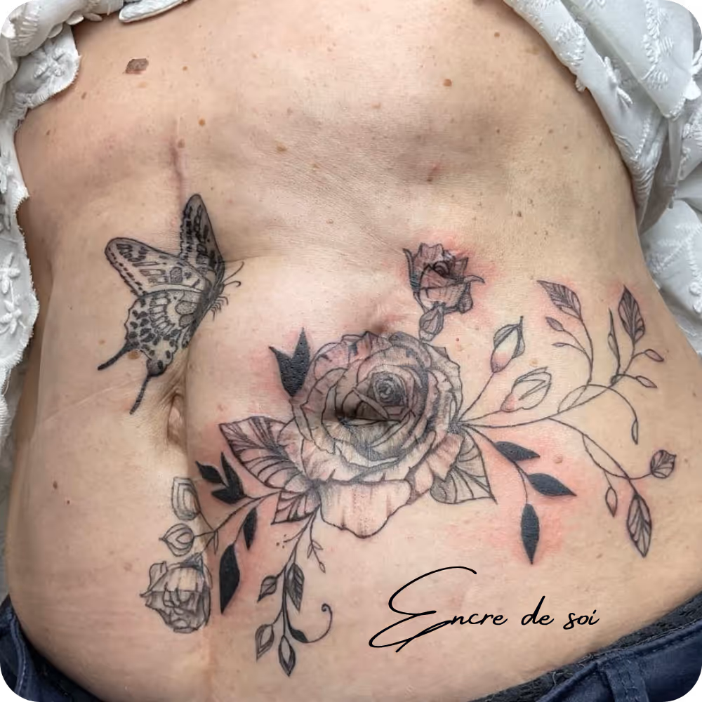 Le tatouage sur cicatrice permet de transformer une marque en véritable création artistique.Plutôt que de dissimuler, cette approche consiste à sublimer la cicatrice en l’intégrant dans un motif personnalisé, en accord avec votre histoire et votre sensibilité.Chaque projet est unique : nous échangeons ensemble pour concevoir un tatouage qui vous ressemble, en tenant compte de la texture et de l’évolution de la peau.